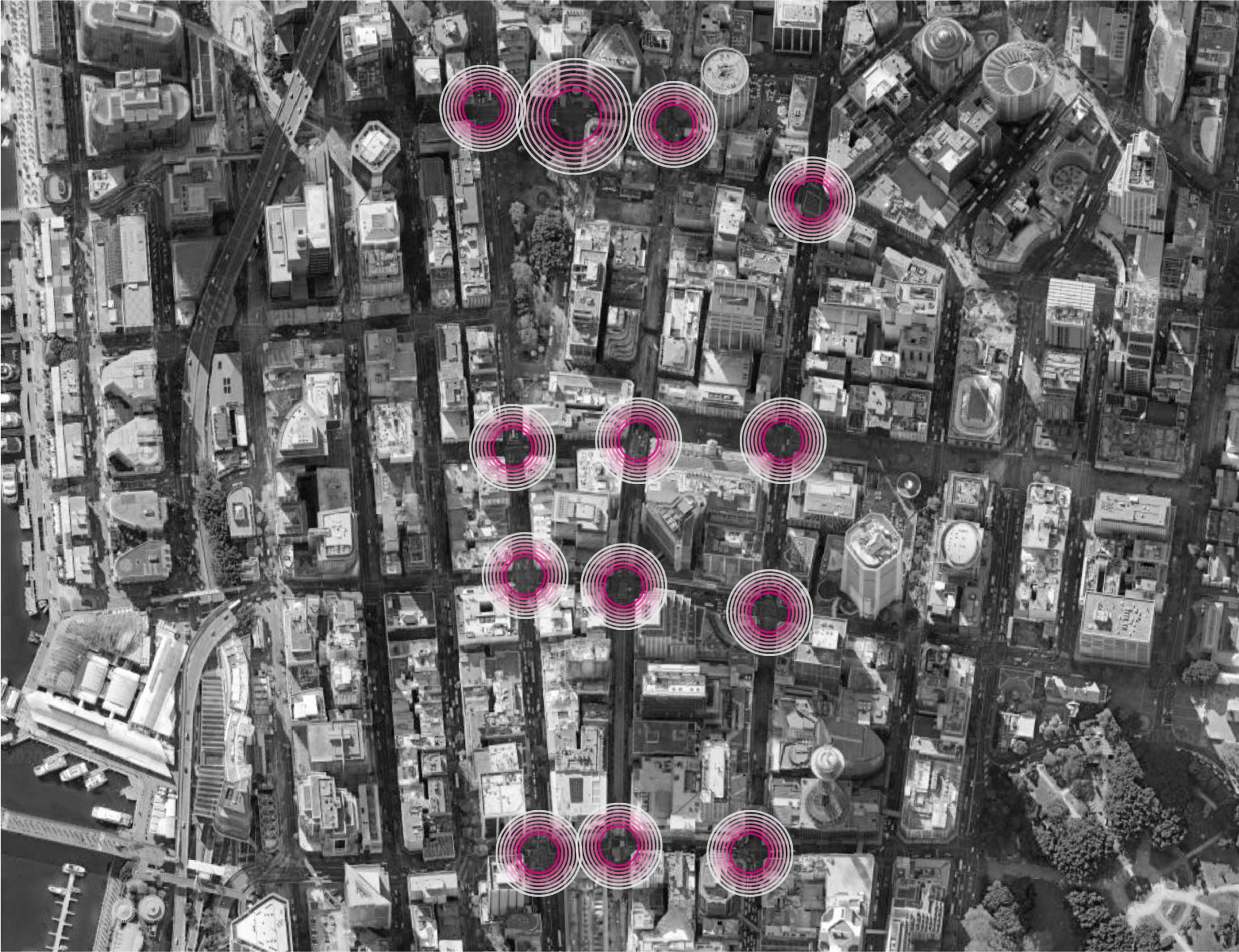 Technology distracts us from the beauty of our immediate surroundings. Our proposal turns the sidewalk into a maze that disrupts continuous flow and utilises mirrors to reflect the news of our immediate surrounding world. Walking on a clear path is an opportunity to get lost inside a screen. Walking through an obstacle course, however, requires focus and cooperation.