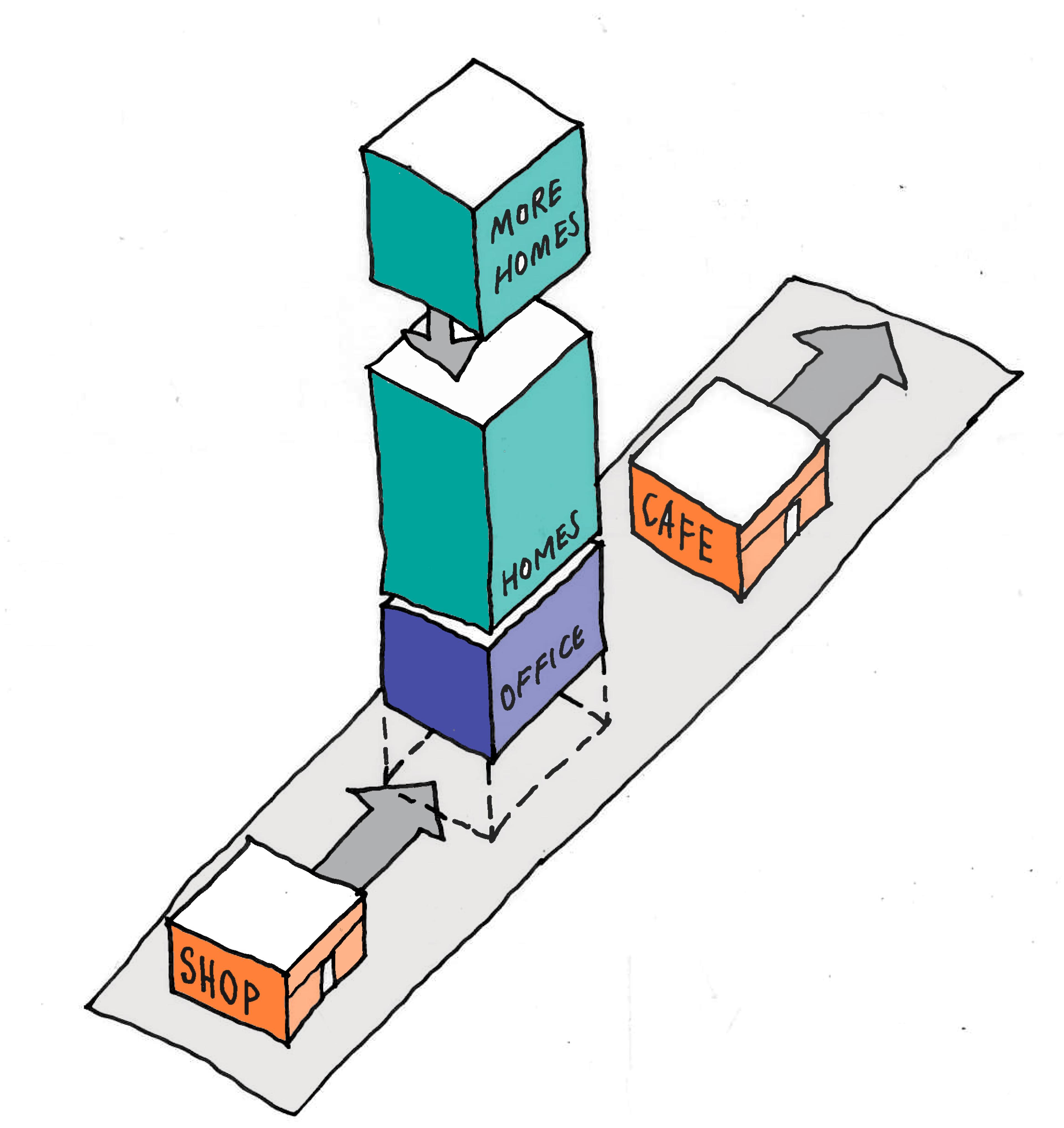 Cities with greater densities encourage people to walk and cycle as distances between destinations are reduced and more accessible. Improvements in health and wellbeing are tangible results of this, with all of the social, environmental and economic benefits that this brings. The reduction in the pace of movement increases opportunities for people to meet informally and exchange information. This improves social cohesion and has economic benefit. It also makes for a more vibrant and active public realm which is safer.