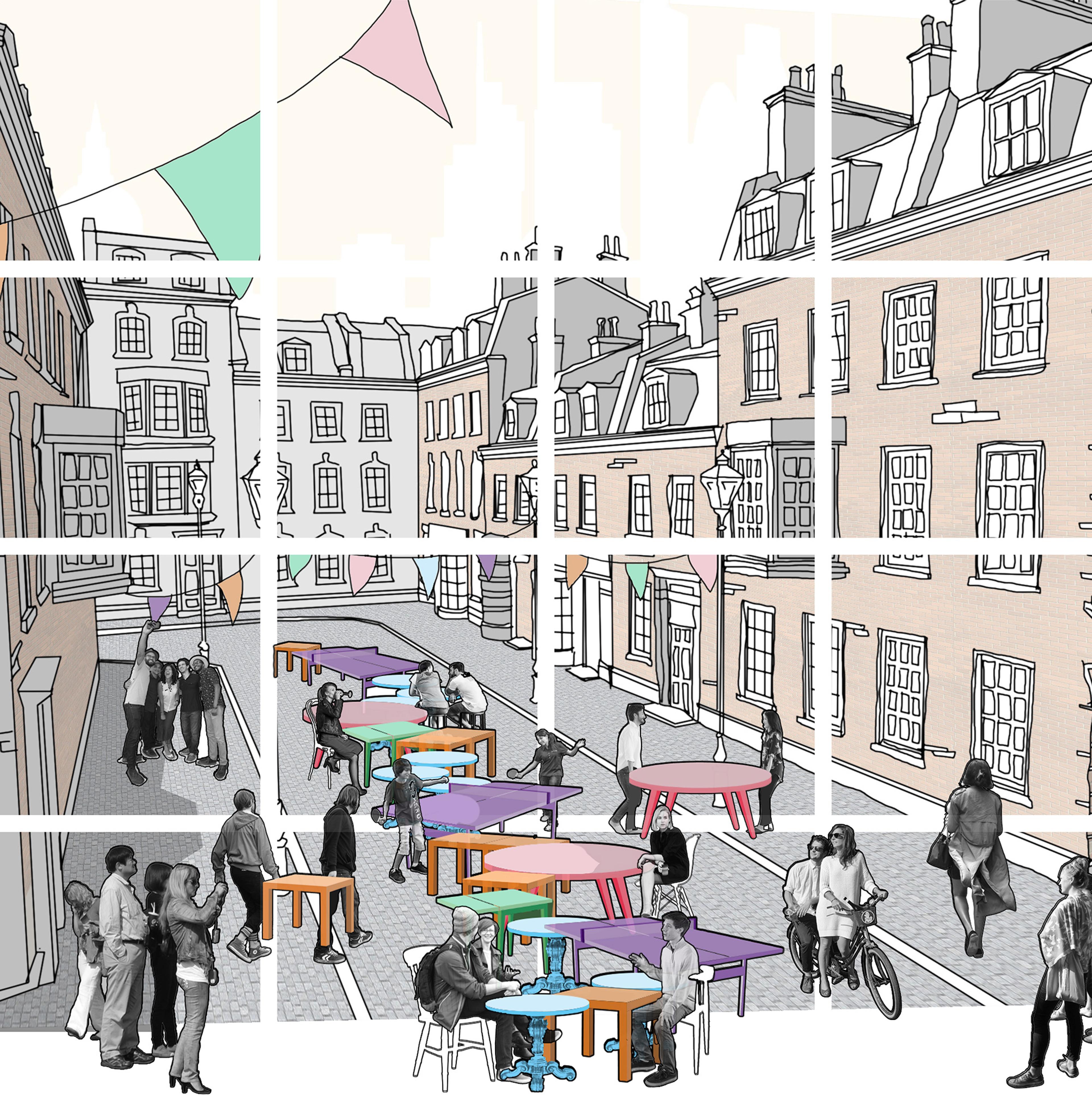 Our proposal, The Table, is a performative installation planted on streets in vital cities. Users can come together for a communal dinner, bringing their favourite dish and exchanging it with someone new. They can play poker with people they don’t know well enough to anticipate bluffing. They can partake in speed dating, ping pong tournaments, or just simple drinks and conversation.