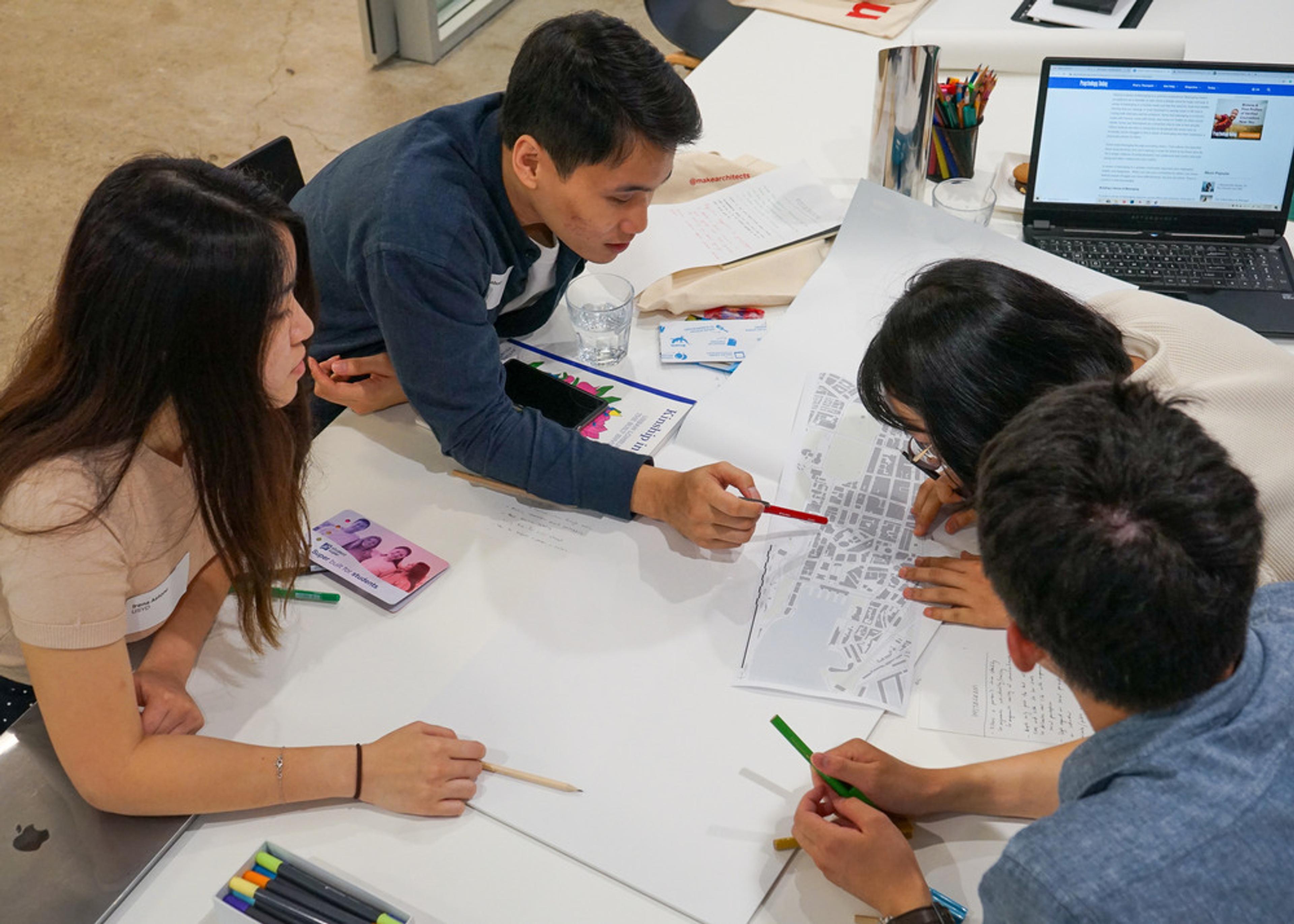 The competition kicked off at the Make Architects studio in February. Students spent a day working on ideas for their entries, with support and mentoring from Make’s architects. They returned to the studio in early March having spent several weeks finalising their designs, to present their concepts to our judging panel of industry experts:
