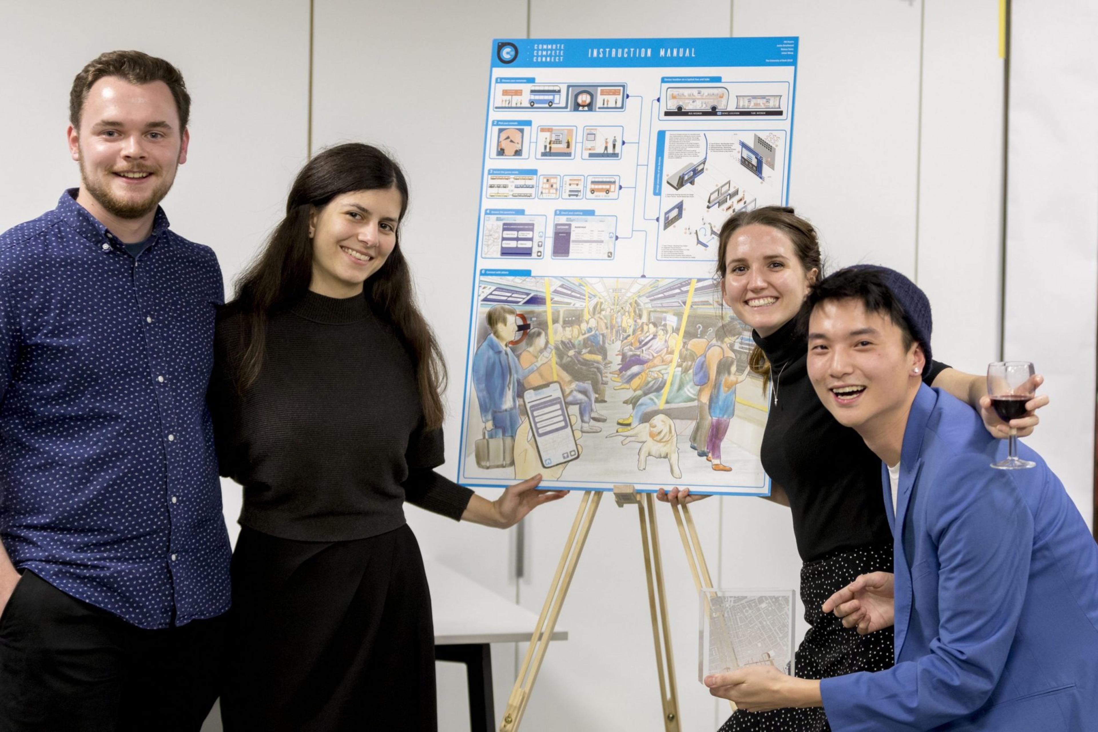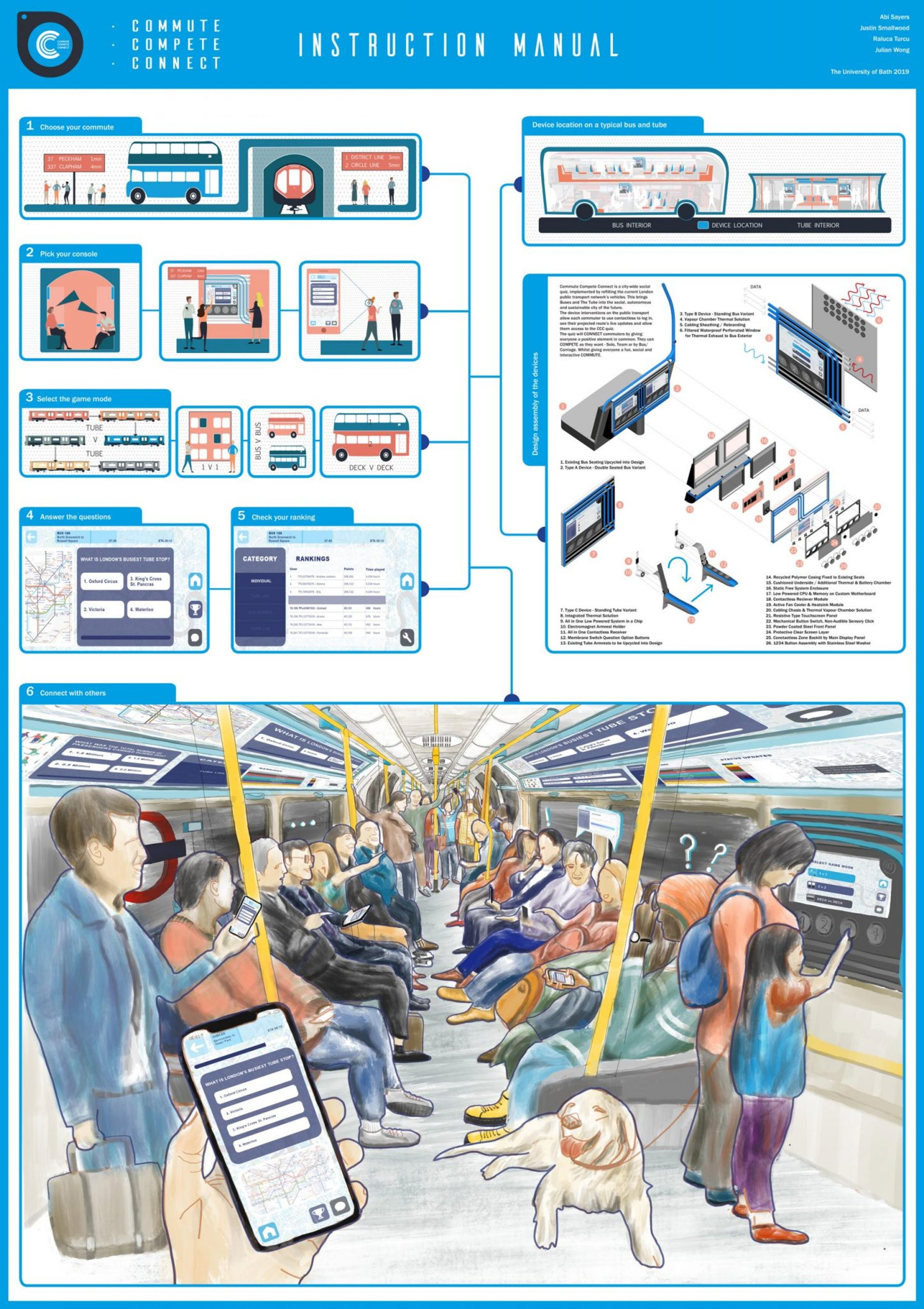 Their idea centred on a London-wide social quiz, implemented by device interventions on public transport, to allow people to connect and inject fun and interactivity into the daily commute. Commuters compete individually, as a team or by bus/Tube carriage, united in a positive game.