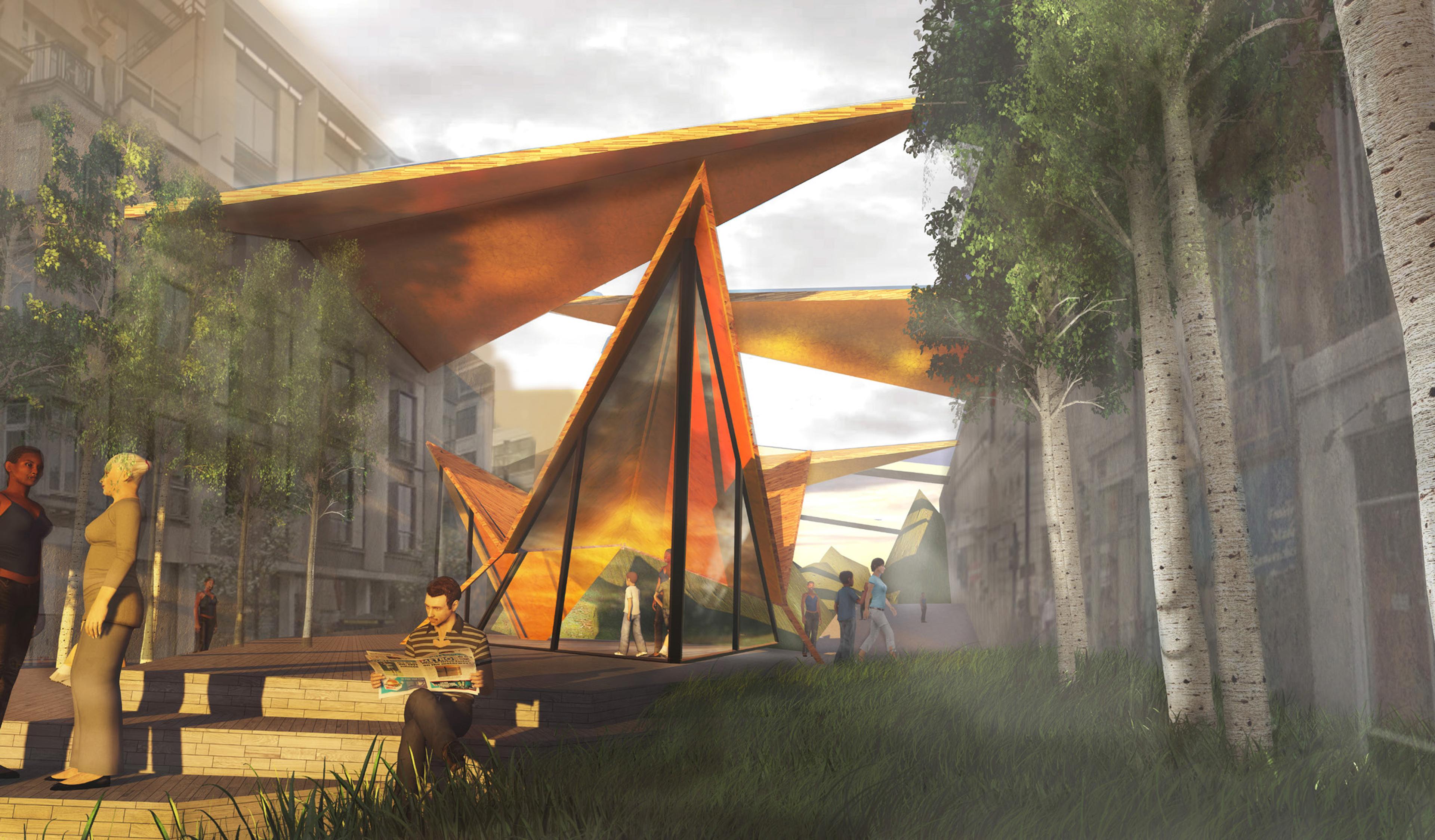 We’ve created a multi-functional platform to bring communities together and turn our differences into strengths that can be shared and used to help one another. Members in an urban society can easily become disconnected and isolated, and some of those members get left behind altogether. Using technology and the cityscape around us, we’ve developed an architectural design and a technology-driven strategy for connecting different social groups together. We’ve designed community hubs and pavilion spaces around our site as meeting spaces for people to exchange their time, skills and services in a symbiotic relationship that benefits all.