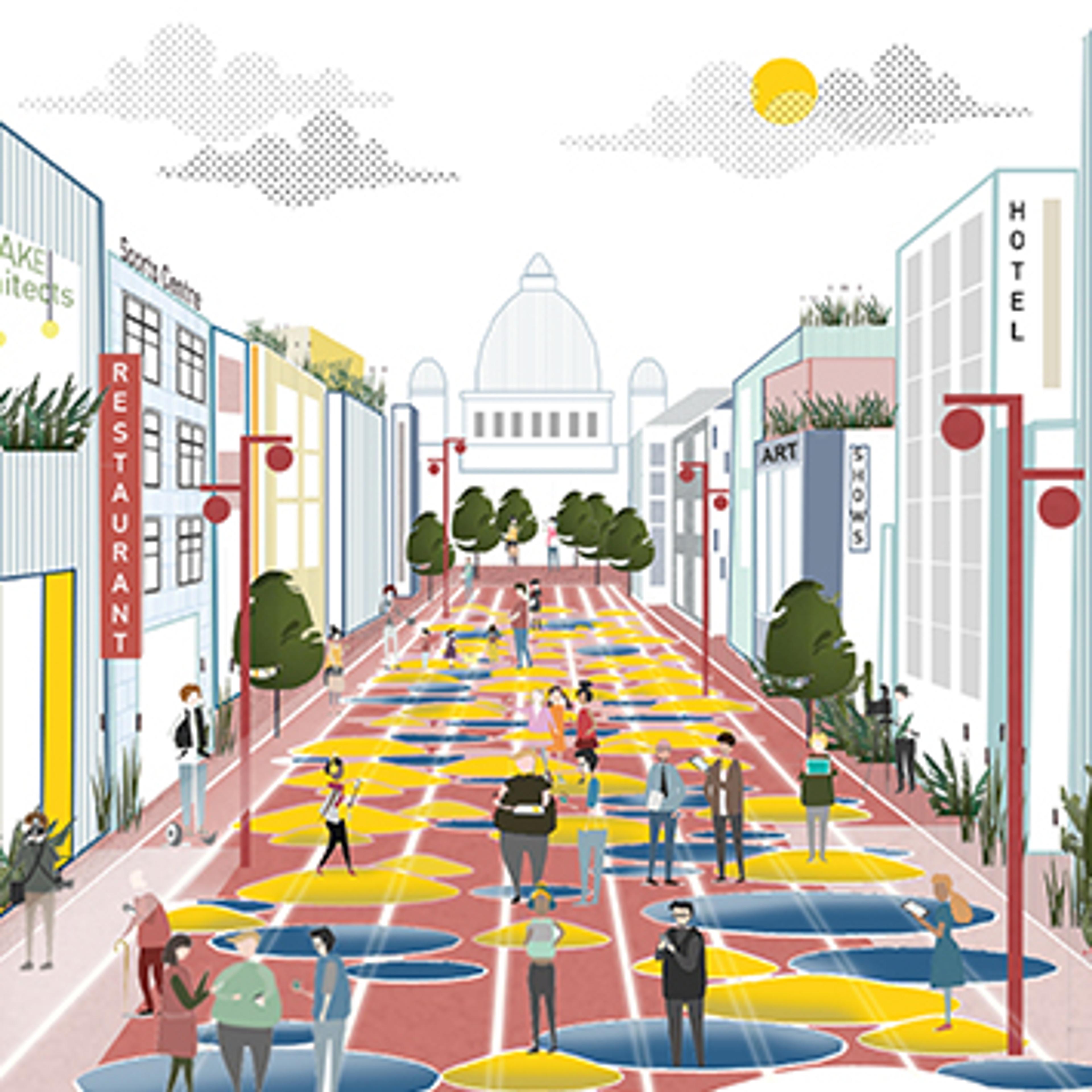 We envision a future social space that is technologically equipped to enable people to interact without physically communicating – an artificial intelligence-powered, emotion-sensing street. With the integration of sensors, segments of the street inflate or deflate according to the emotions of the individuals using it.