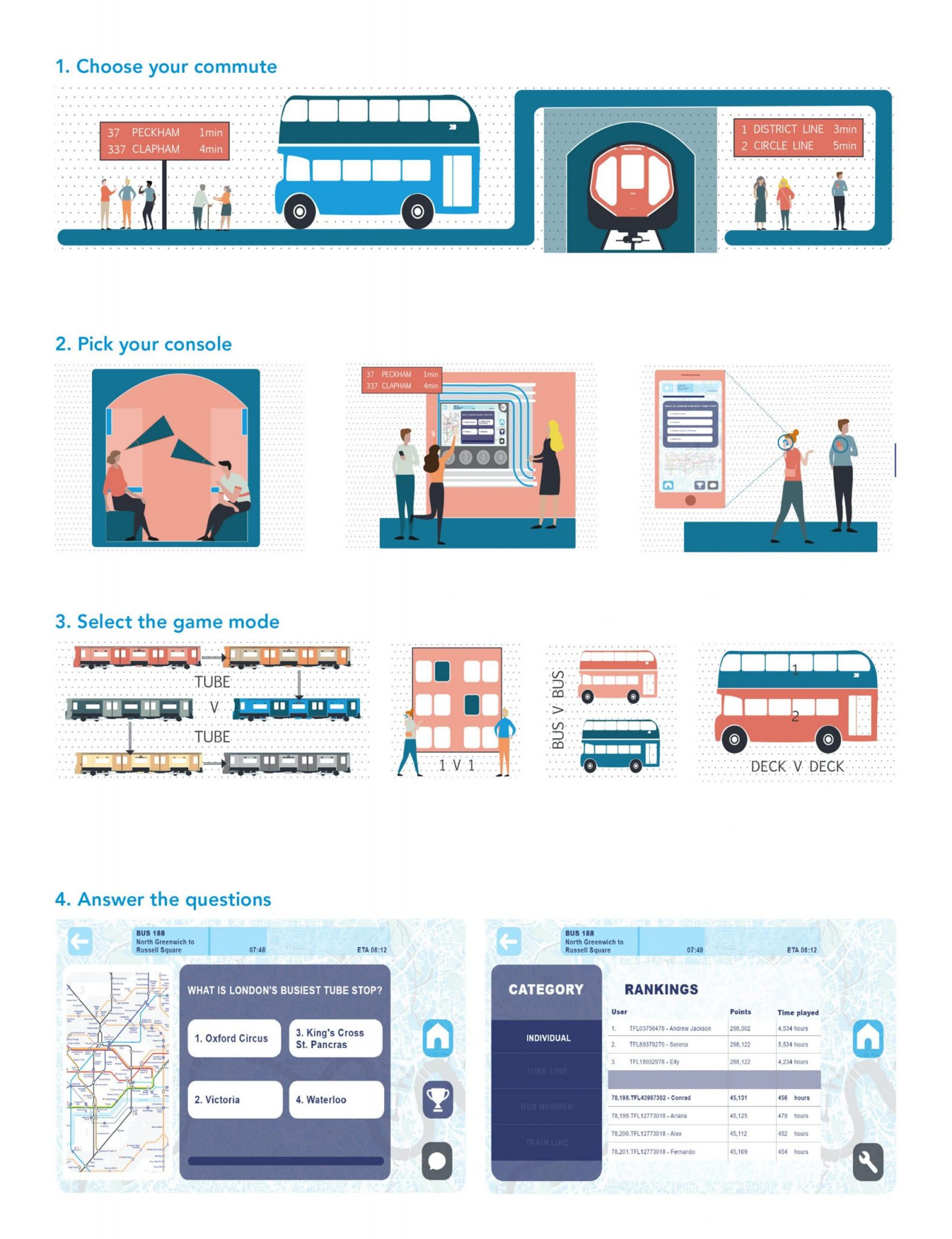 WinnerCommute, Compete, Connect is a citywide social quiz, implemented by refitting the current fleet of vehicles in London’s public transport network to bring buses and Tube carriages into the social, autonomous and sustainable city of the future.