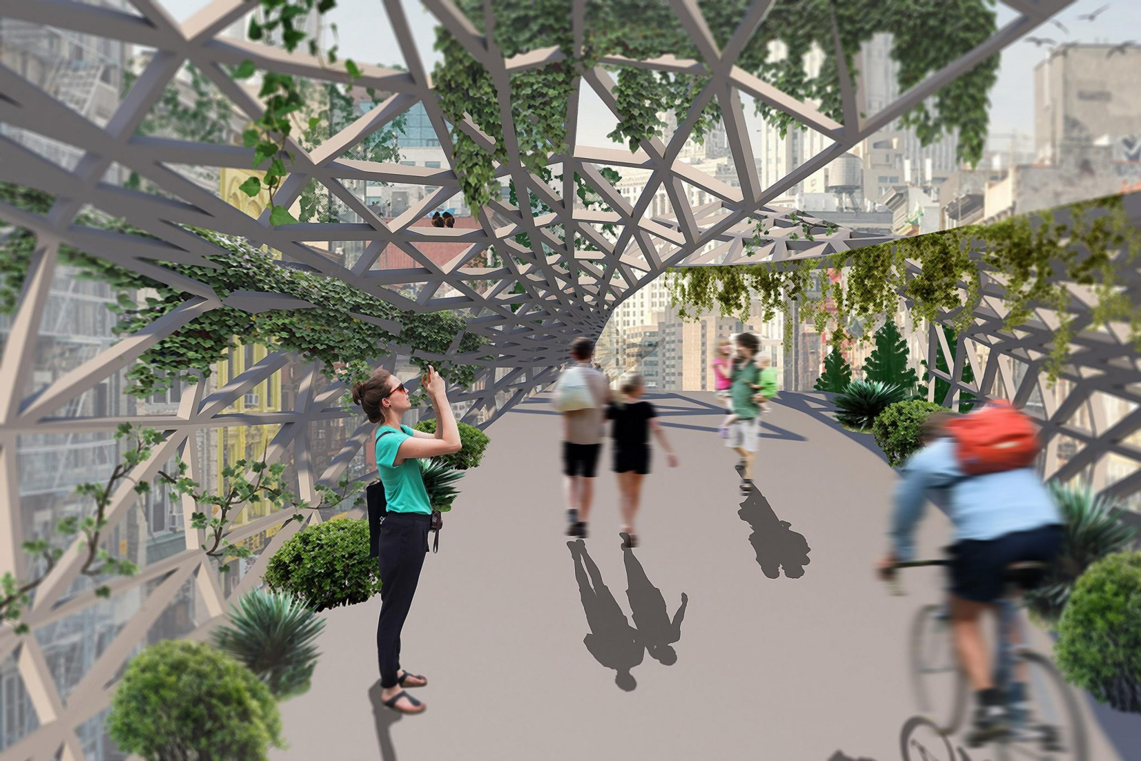 These structures act as a form of conservatory and introduce nature into the cityscape. They are elevated so they are separated from cars.