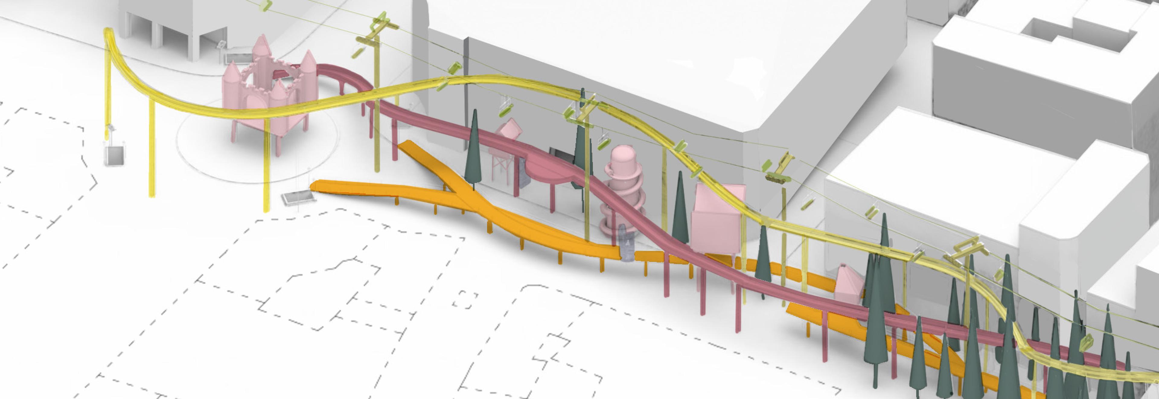 This project aims to break this indoctrination by using child- like motifs to remind adults of the joy of unstructured play and give users of all ages a space to frolic.