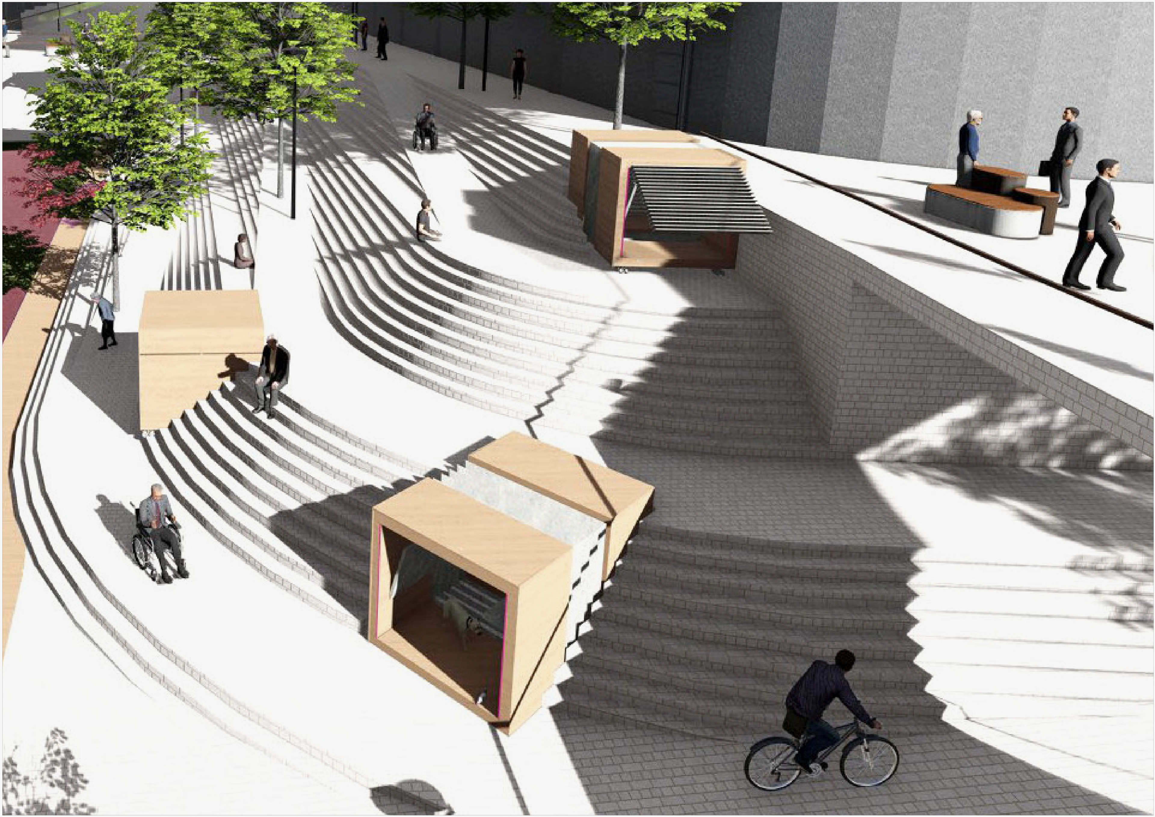 In turn, these levels present an opportunity to create communal areas for the homeless, offering a place for them to congregate, make connections and even seek work. The idea is to tackle their isolation and loneliness, offer a sense of belonging, and provide a stable address from which they can build a path to the future.