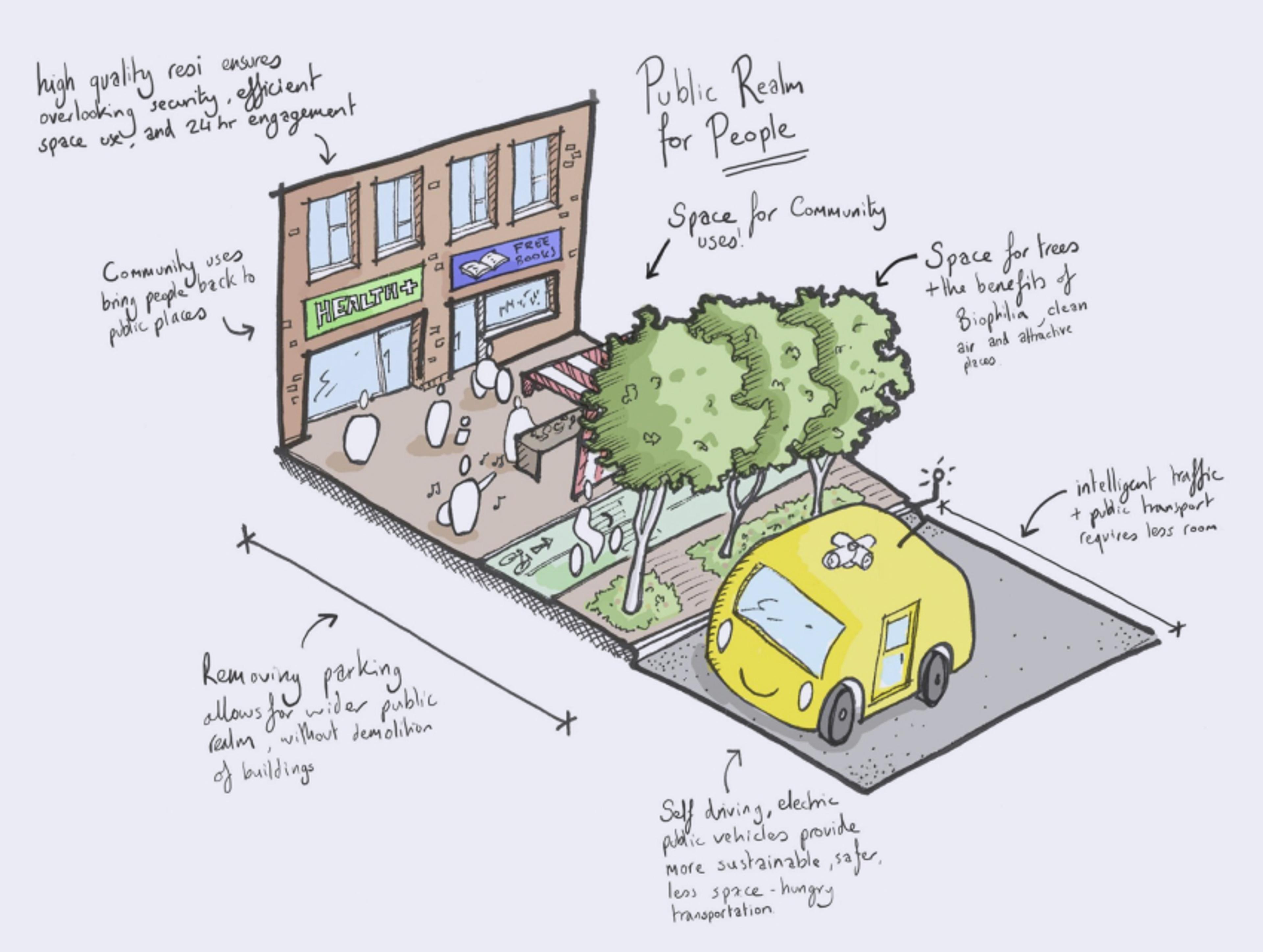 One of these responses involves our movement within a city. A lot of the time, our movement can feel restricted due to the dominance of roads and vehicles, resulting in minimised access and freedom to public spaces. There is no shortage of case studies showing how the restricted parts of our cities can reflect loneliness and social anxiety. Public spaces, such as allocated parks and connections to nature, can be a vital help to our mental health and pro-social interaction.